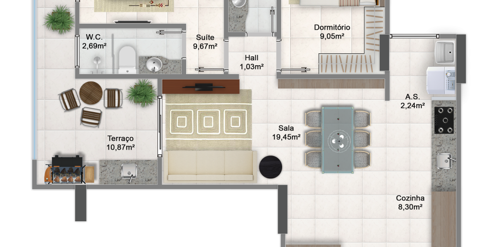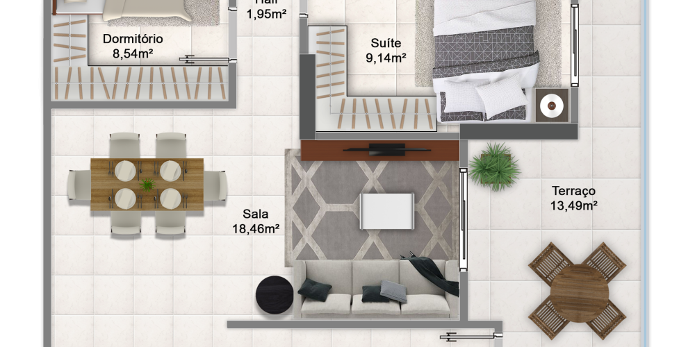 Apartamentos de 2 dormitórios com 1 ou 2 suítes, de 70 a 91 m², com 1 ou 2 vagas de garagem.