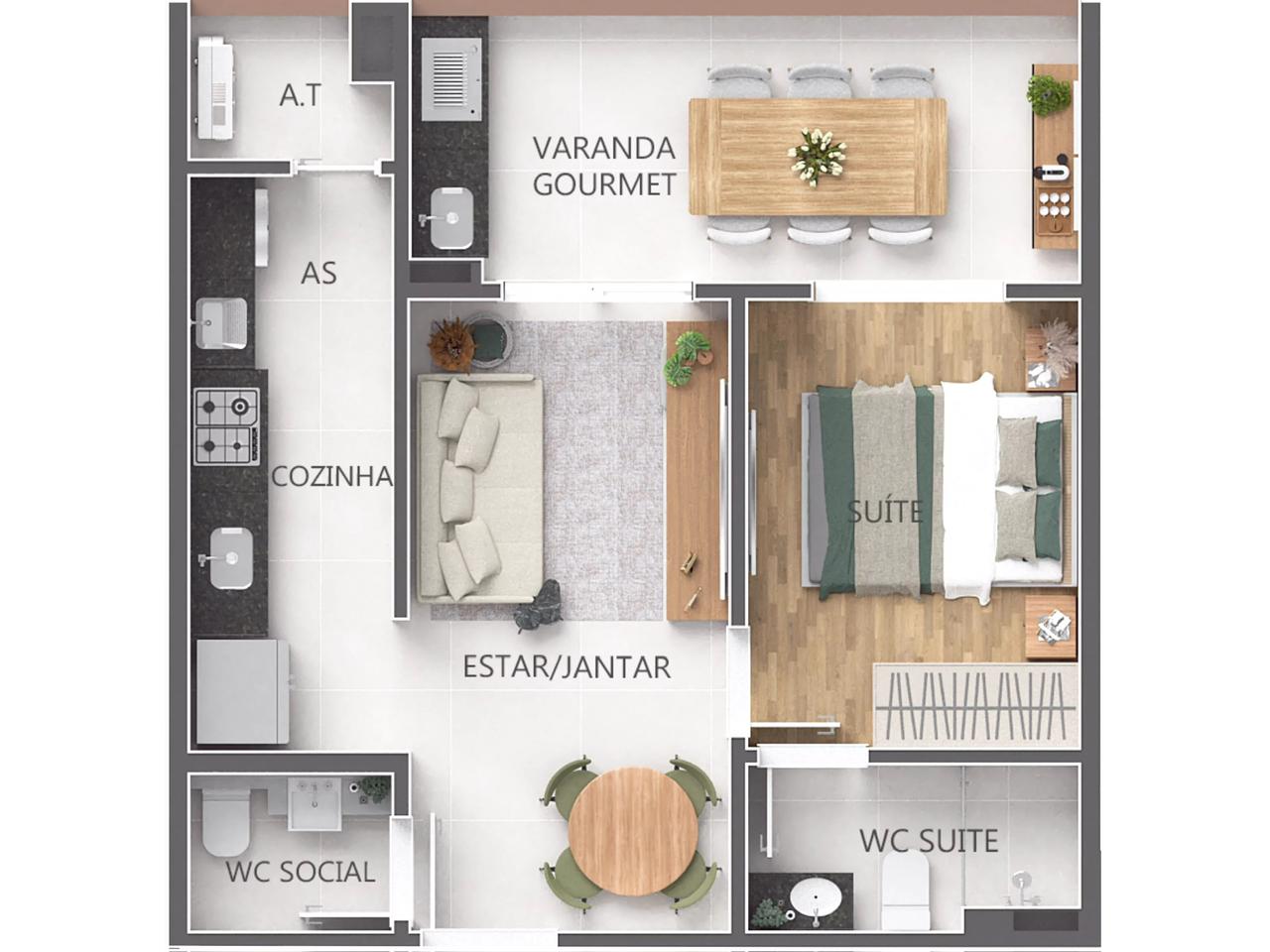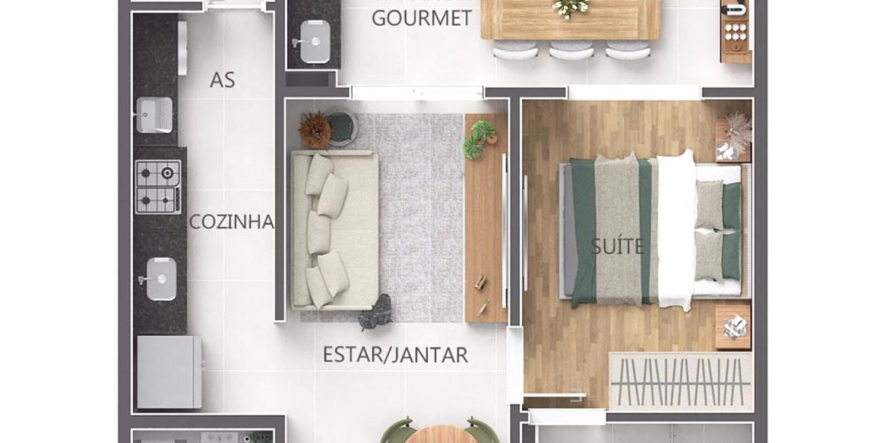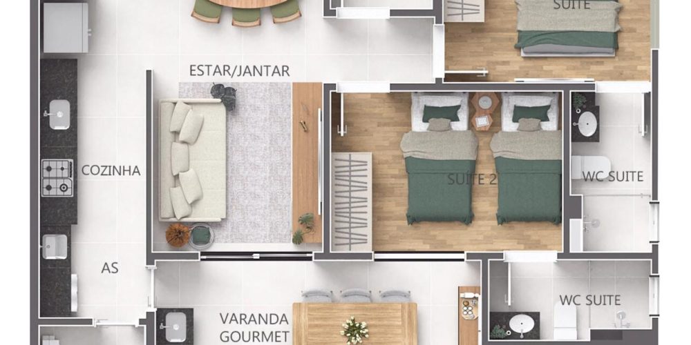 Apartamentos de 1 e 2 dormitórios, de 51 a 75 m², 1 e 2 vagas de garagem.